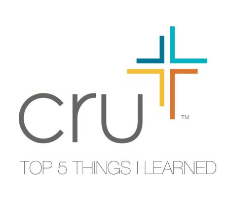 This is the final post of my " Top 5 Things I Learned in Cru " series. Thanks for reading and I pray it was a blessing for you and everyone in Cru. FYI, posts 1 , 2 , 3 , & 4 can be found here.