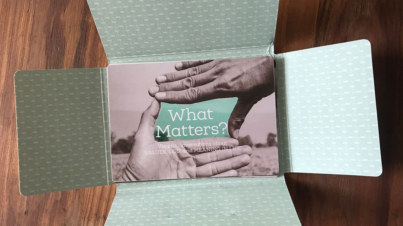 The “What Matters?” tool has eight cards covering concepts like justice, beauty and power – topics that matter to people and cover topics in Jesus’ Beatitudes.